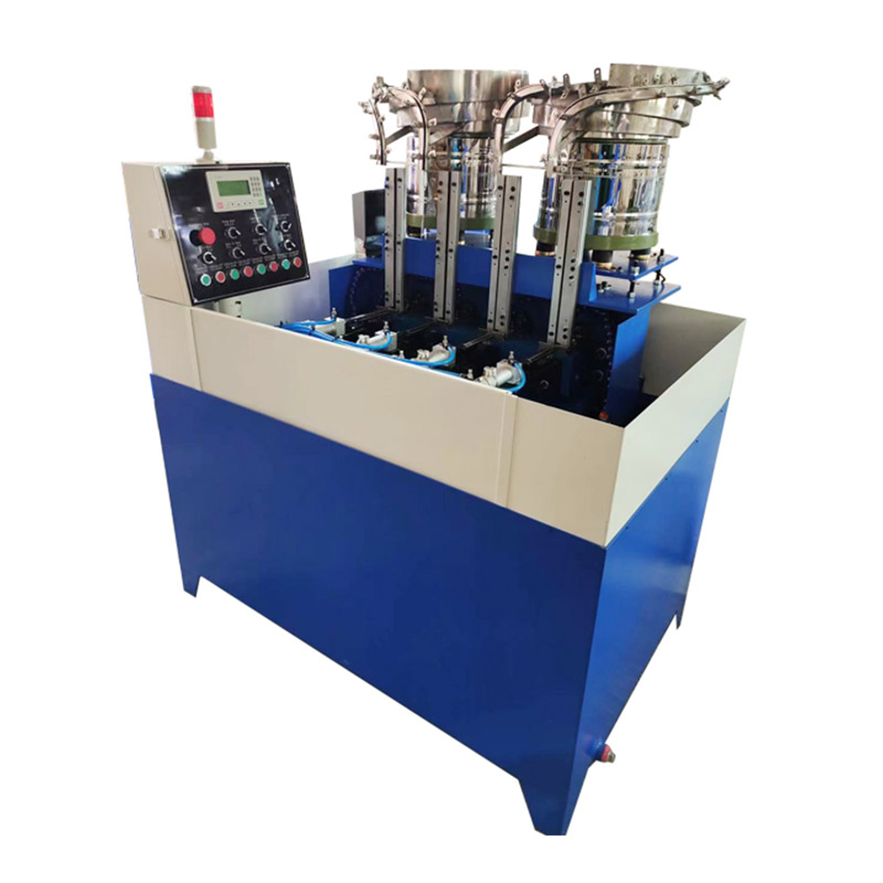4 스핀들 너트 태핑 기계의 작업 프로세스에는 일반적으로 작업자 또는 자동 공급 장치가 인덱싱 테이블의 전용 고정 장치에 4개의 원자재를 삽입해야 합니다. 그런 다음 인덱싱 테이블이 스핀들 아래에 원자재를 배치하는 동시에 스핀들이 맞물려 나사산을 절단함으로써 단일 스핀들 기계에 비해 출력이 4배 증가합니다.
