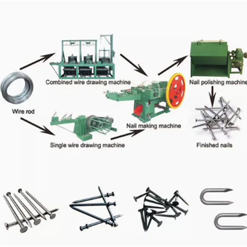 교외의 대규모 건설 현장에는 임시 못 제조 스테이션을 설치하고 저소음 및 고속 못 제조 기계를 사용합니다. 건설 현장에는 많은 양의 못이 필요하며 신속하게 배송되어야 합니다. 예를 들어, 비계를 만들거나 보호망을 고정할 때 3인치 둥근 못이 많이 필요합니다. 저소음 설계로 건설현장 주변의 주거지역이나 농경지에 영향을 주지 않으며, 기계 이동도 용이합니다.