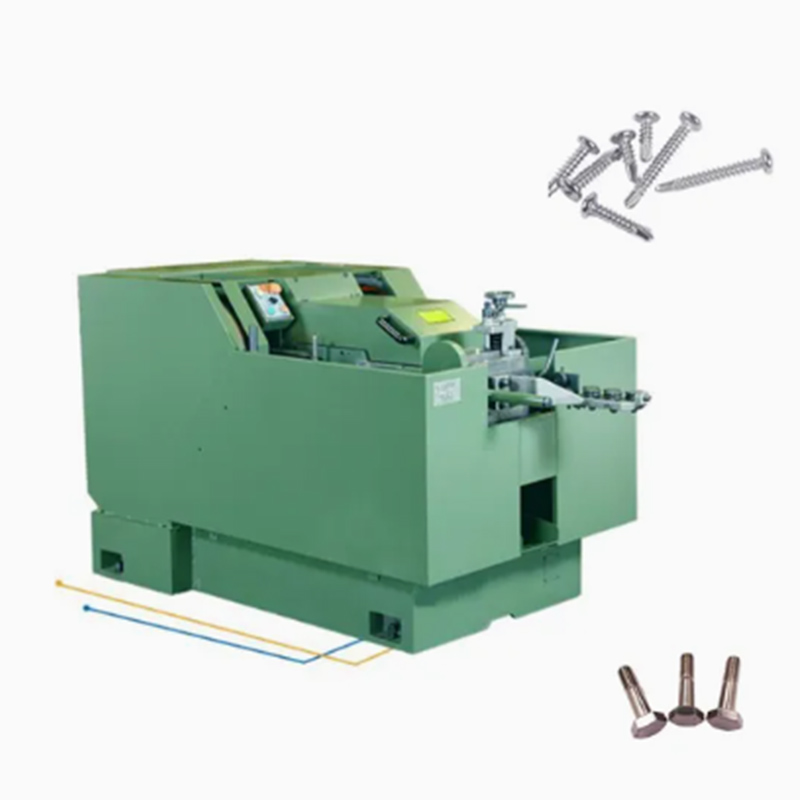나사 제목 기계는 나사의 헤드를 형성하도록 특별히 설계된 콜드 단조 프레스입니다. 그것은 컷 와이어 (원료)를 사용하고 단조 스테이션에 하나씩 공급하며, 농도를 위해 원료의 한쪽 끝에 고압을 적용합니다. 이 냉간 형성 과정은 재료를 절단 할 필요가 없으며 금속을 다양한 나사 헤드 모양으로 형성 할 수 있습니다.